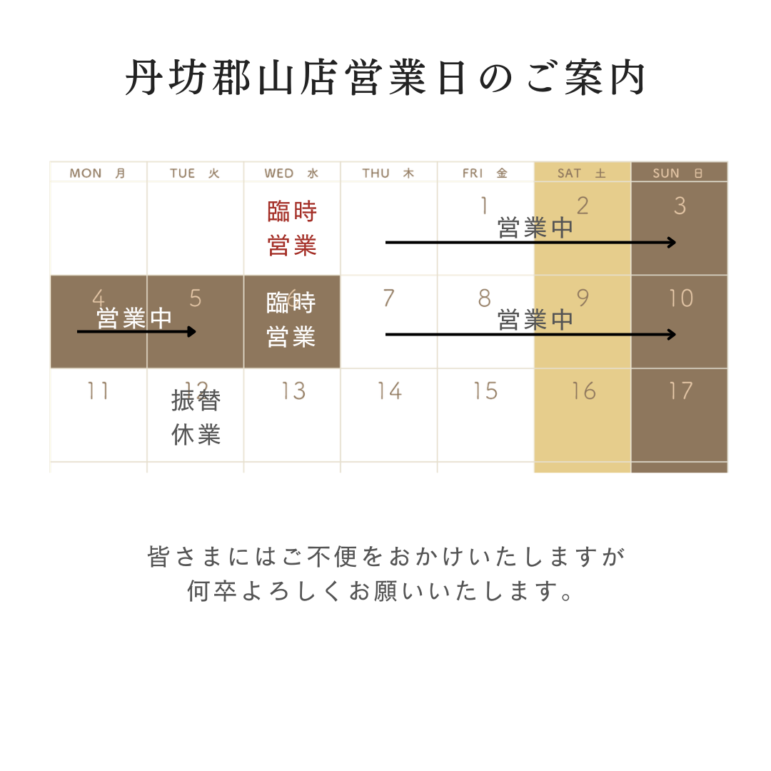 郡山店に限り、5/12を振替休業とさせていただきます。